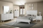This modern bedroom group sets itself apart through simple design with a few delightful twists. It starts with the clean white finish–a classic element that thrives when paired with subtle yet impactful details. Look closely Contemporary White Solid Wood, Others Mitered Corner Design