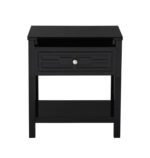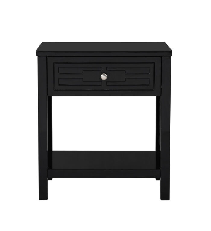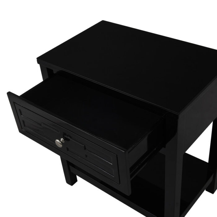 Dylan 23″W Black Wooden End Side Table Nightstand with Glass Top and Drawer – Lilola