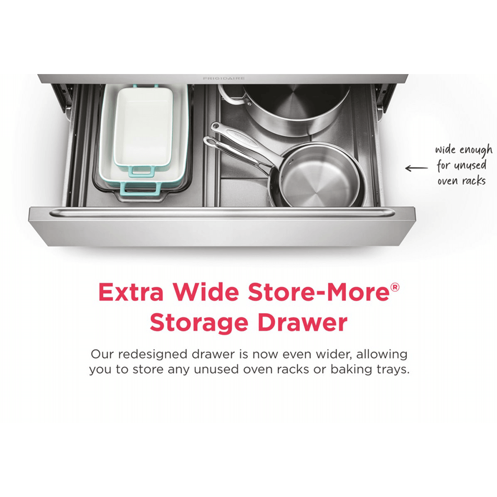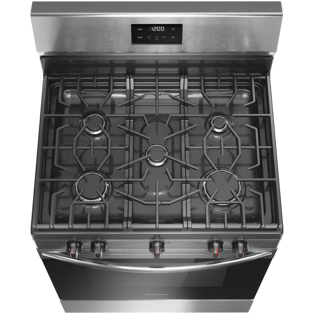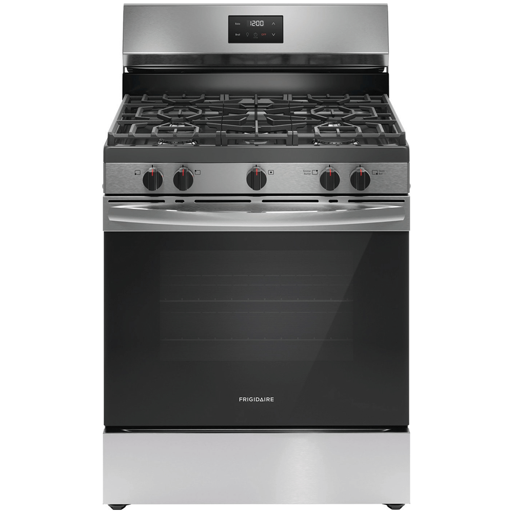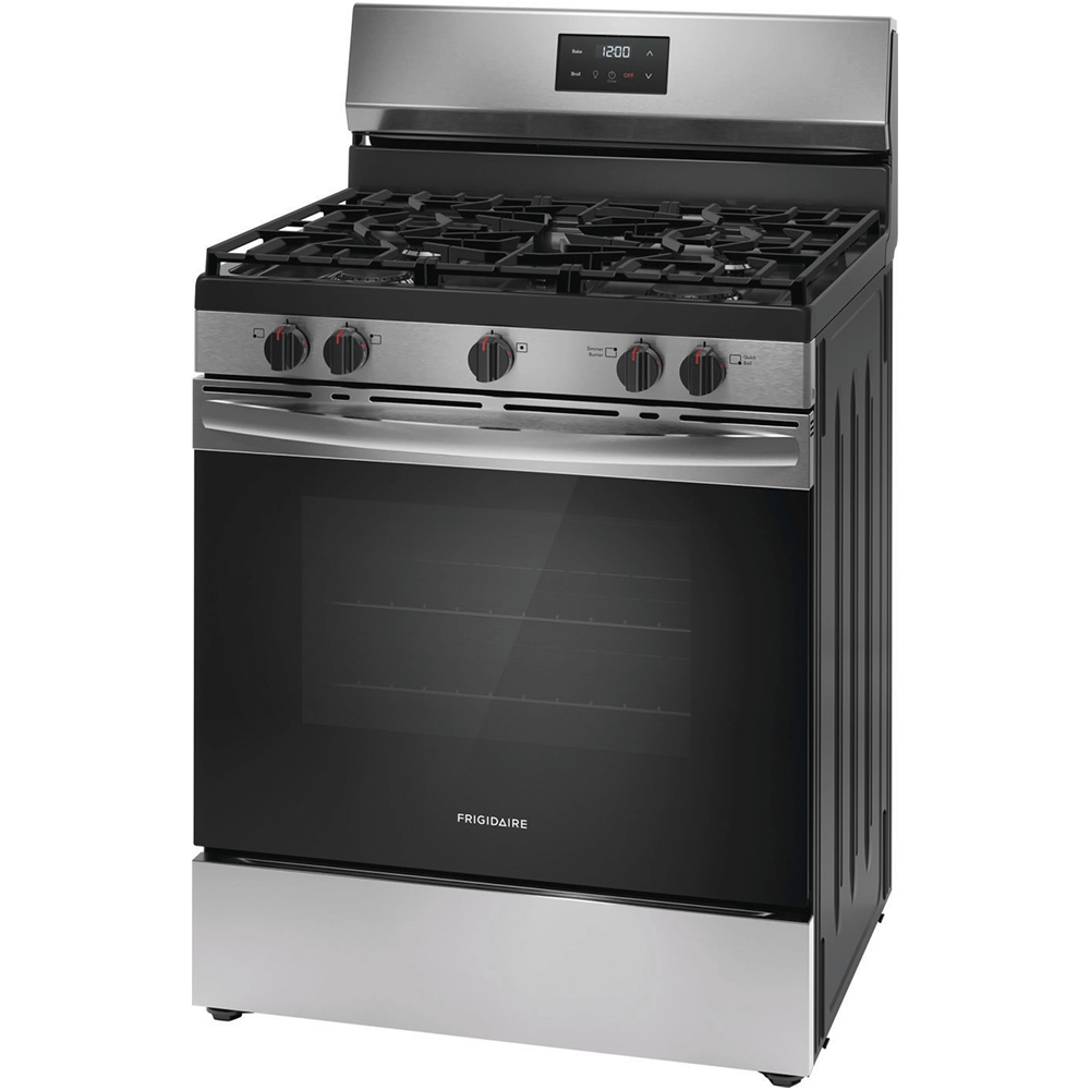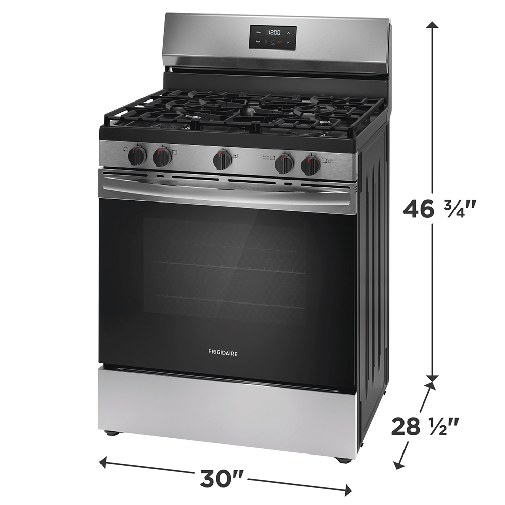 The Frigidaire 30″ Gas Range allows you to get to mealtime faster with the powerful 18,000 BTU Quick Boil burner. Experience the ultimate in cooktop flexibility with our five burner cooktop, designed to handle all of your cooking needs. Enjoy consistent, even baking results with our Even Baking Technology. Plus, cook more at once with our large 5.1 cu. ft. capacity oven.