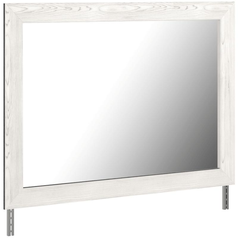 Cool, clean and casually modern. The Gerridan dresser and mirror’s wispy whitewash and gray finish sets the tone for your calming sanctuary. Large linear pulls add dimension and authenticity. Six smooth-gliding drawers neatly accommodate your bedside needs.
