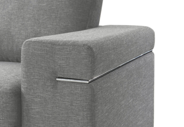 Tags: 10" Arm Width, 18" Seat Height, 2" Leg Height, 23" Seat Depth, 25" Seat Width, 7" Seat Cushion Thickness, Brushed Stainless Steel Legs, European Style living room set, Full Foam Seat Cushion, Hardwood Frame, Light Gray, Quality woven fabric, Removable back and seat Cushions, Woven
