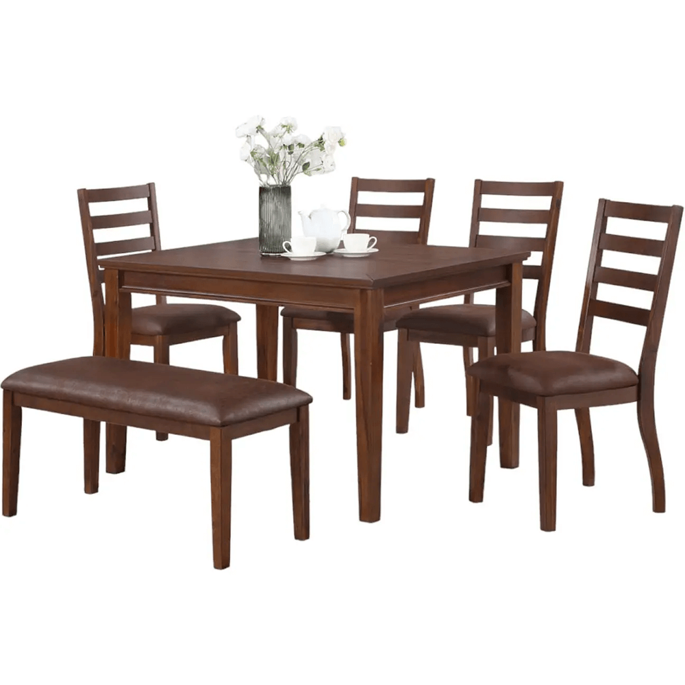 Glendale 6 Piece Dining Set in Brown Wood & Brown Leatherette By Vilo Home