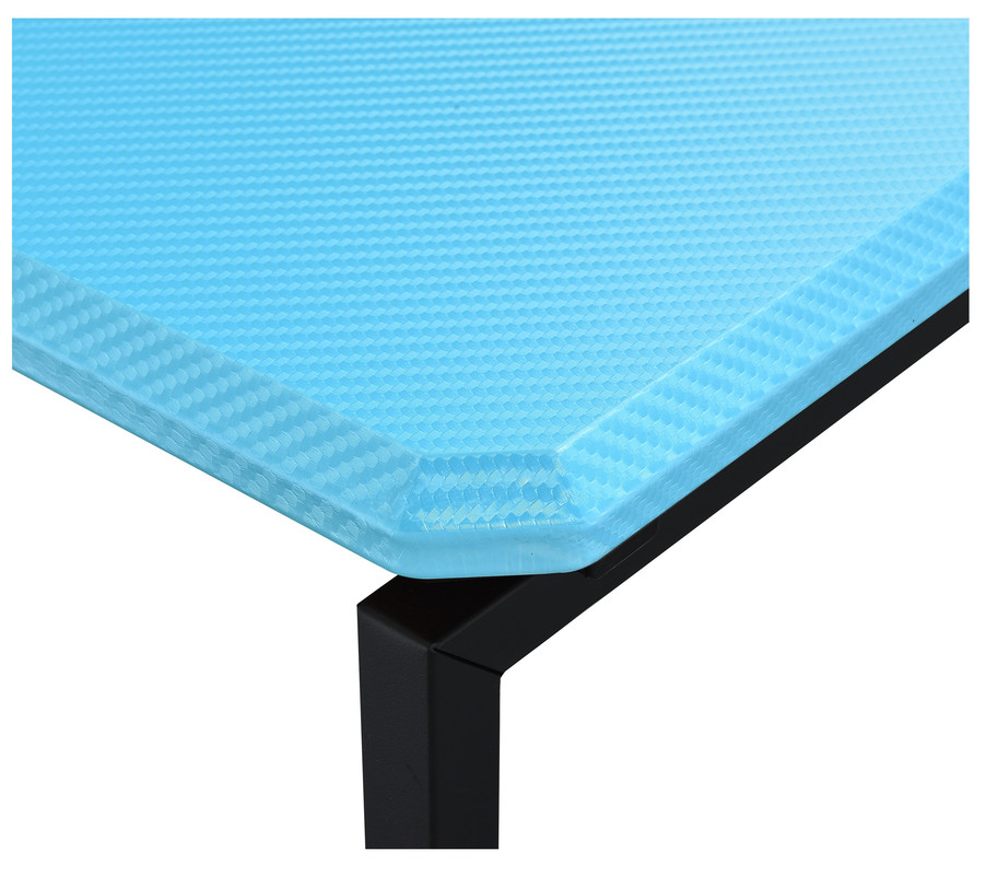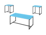 Tags: 0.7" Tabletop Thickness, adjustable feet, Angled Corners on Tabletops, Beveled Edges, blue, Carbon Fiber Wrapped Rectangular Tabletops, Coffee Table Dimension: 39.5"W x 19"D x 18.5"H, End Table Dimension: 19"W x 15.5"D x 21.5"H, Includes 1 coffee table and 2 end tables, Medium Density Fiberboard Tabletop, Metal Frame