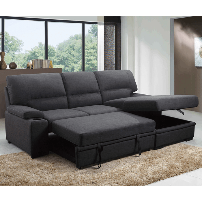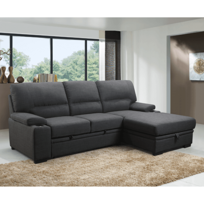 Tags: charcoal, cup holder, dark grey, grey, In Store Now, sectional, sleeper, sofa chaise, storage