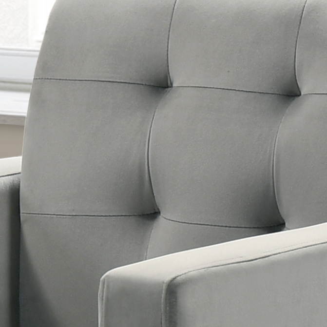 Tags: 16.14" Seat Back Height, 16.14" Seat Height, 20.47" Seat Width, 20.87" Seat Depth, 23.6" Arm Height, 5.51" Plastic Legs, 6.2" Cushion Thickness, Full Foam Seat, Light Gray, Non Removable Back Cushion, Removable Seat Cushion, Square Arms, Tufted Back, velvet