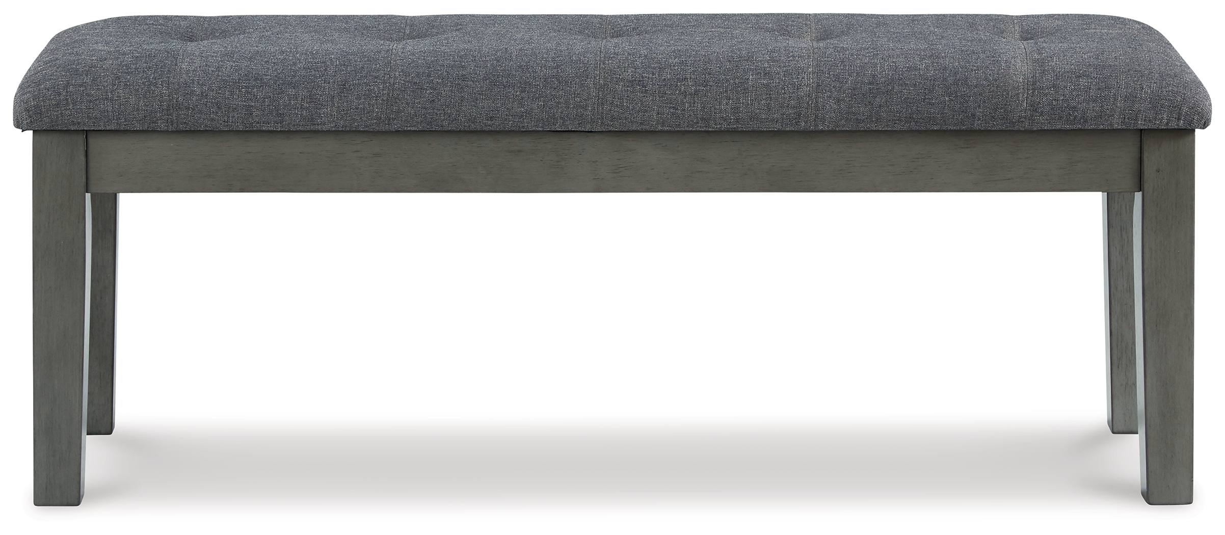Cool and on-trend. This dining bench sports a two-tone gray look for a contemporary-yet-casual feel. The cushioned foam seat in a gray textural fabric pairs seamlessly with the antiqued gray finish, providing you with a super-stylish and versatile seating option. Dimensions: 50”W x 16”D x 19”H Assembly Instructions: https://www.ashleydirect.com/GraphicsVault/Assembly_Instr/D589-00_AIS.pdf
