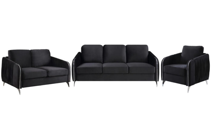 Hathaway Black Velvet Fabric Sofa Loveseat Chair Living Room Set – Lilola