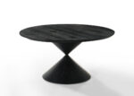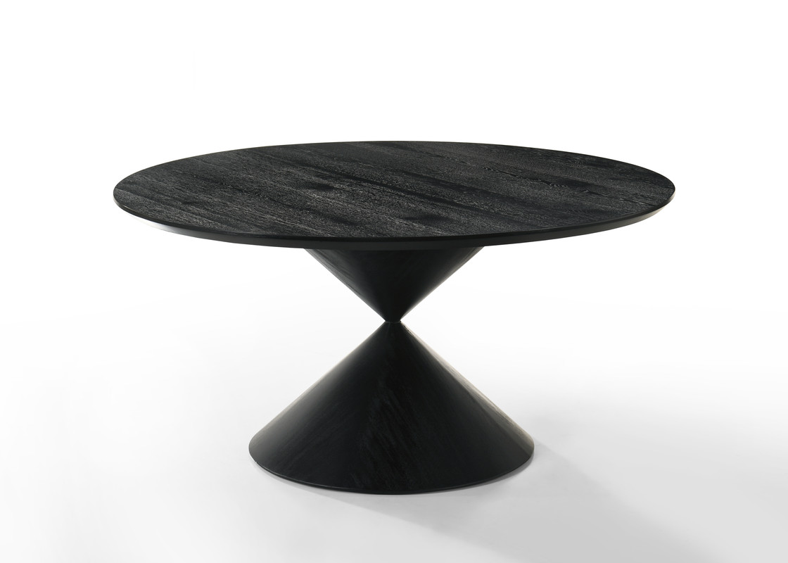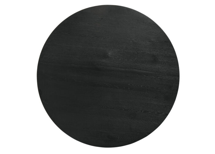 Tags: 59" Round Table Top, Ebony Black, Hourglass Shaped Base, Natural Wood Grain Color Variation, Veneer Finished Table Top