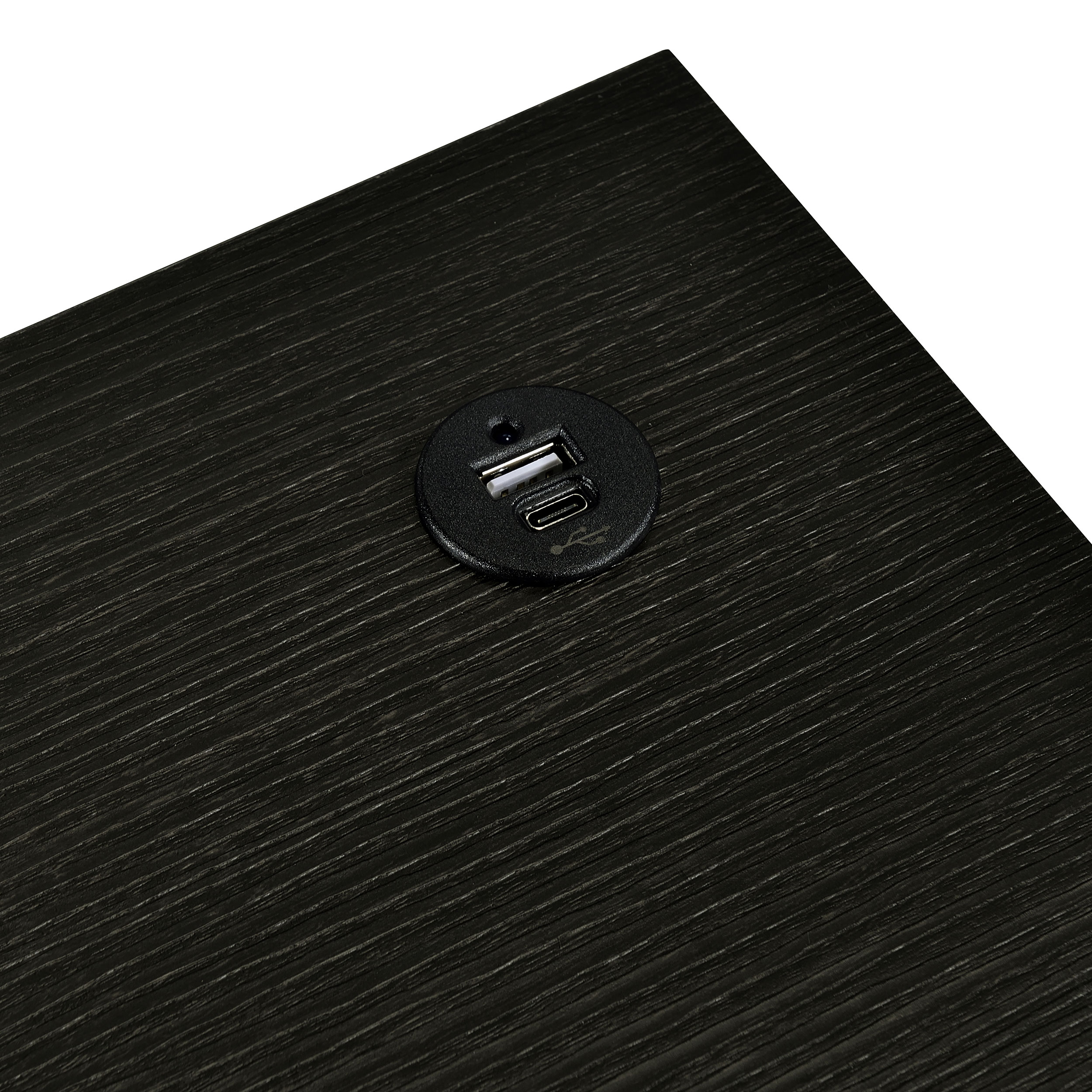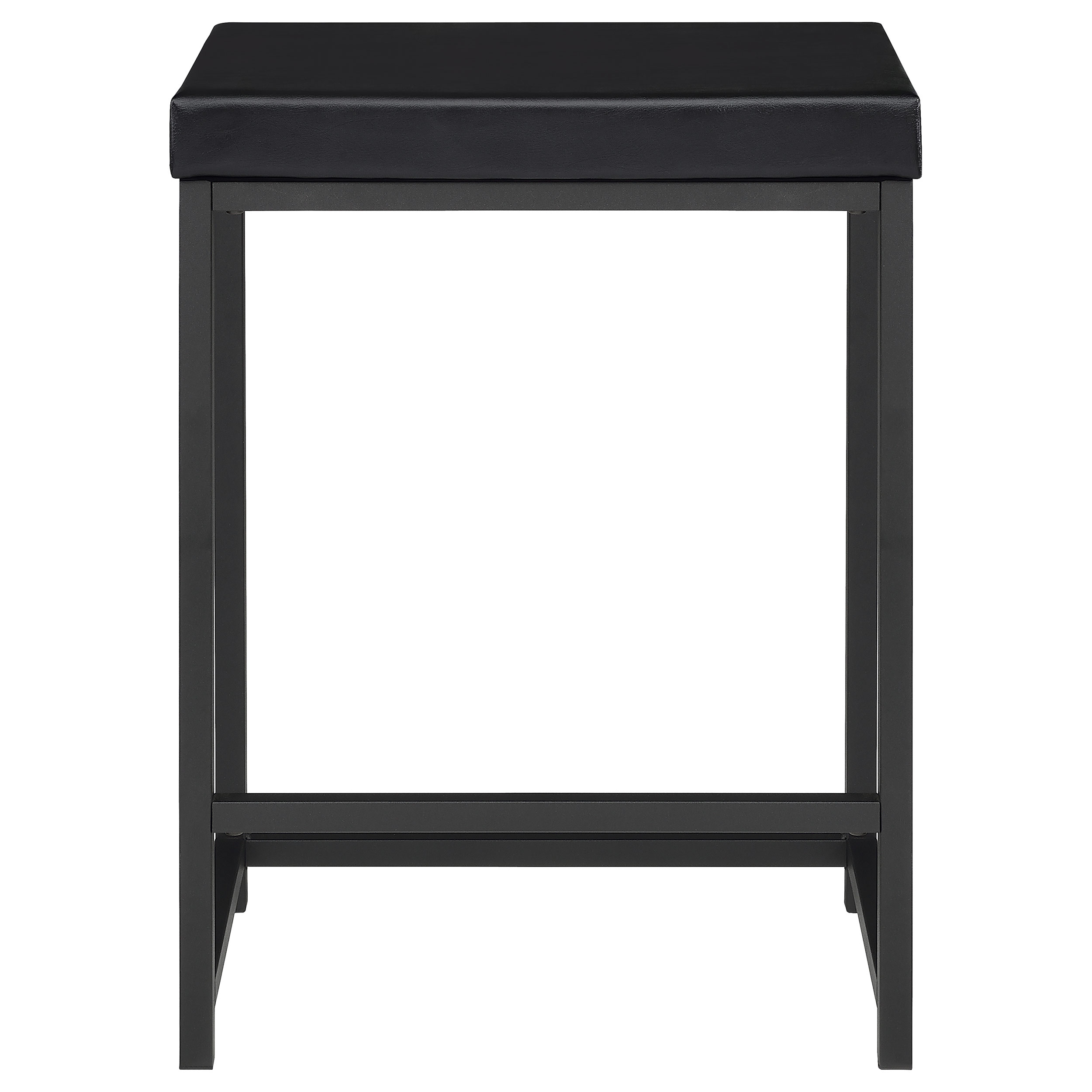 When space is at a premium, this modern four-piece counter height dining set does everything you need and more, easily serving as dining table, workspace, or homework spot. It features clean, crisp design with straight lines and square corners, all in a black finish that blends into surrounding decor in virtually any setting. The larger table includes a USB port in its top, while the smaller nesting table is on wheels that allow for easy movement to the perfect position for every occasion. Two stools are backless, with plush foam cushions and faux leather upholstery. Built in footrests offer added comfort and support for all to enjoy.
