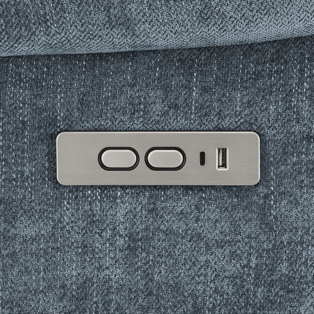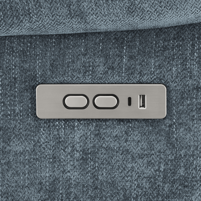 Power recline function is controlled with simple buttons and the power panel includes a USB port