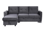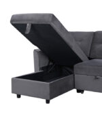 Hudson 83″W Dark Gray Velvet Reversible Sleeper Sectional Sofa with Storage Chaise – Lilola