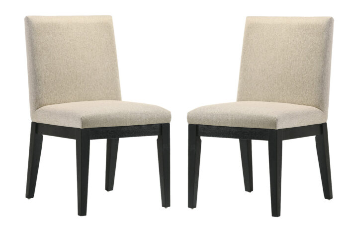 Tags: 16" Seat Depth, 18" Seat Height, 18" Seat Width, armless, Black Finish / Beige Fabric Chair, Chair Size: 19"W x 22.5"D x 34"H, Cushioned Seat, Ebony Black, Ergonomic Seat, fabric, Includes 1 Table and 4 Dining Chairs, Natural Wood Grain Color Variation, Table Size: 47" Dia x 31"H