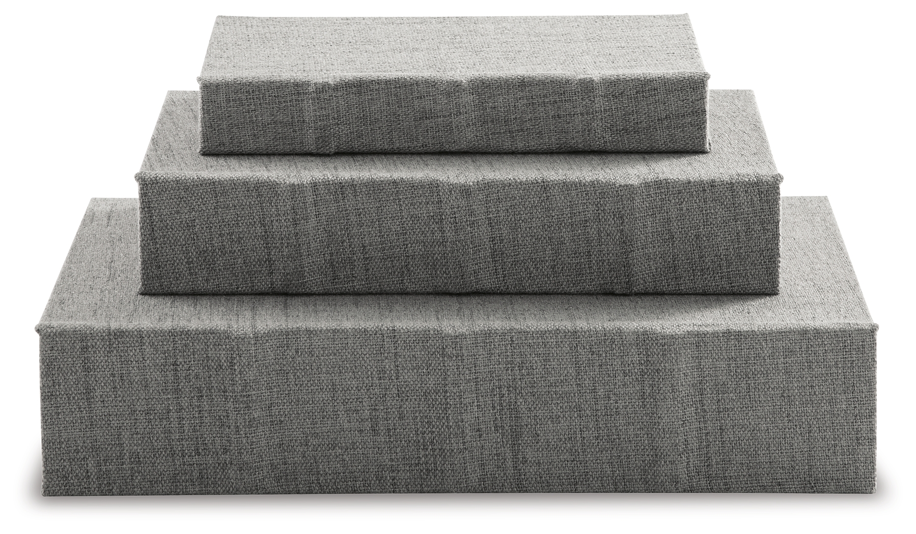 This set of three keepsake boxes makes storage so quietly understated. The gray cover is complemented inside with a black velvet lining. The perfect place for your dearest keepsakes, this set adds a touch of casual elegance to your decor. Dimensions: 13”W x 9”D x 3”H Assembly Instructions: