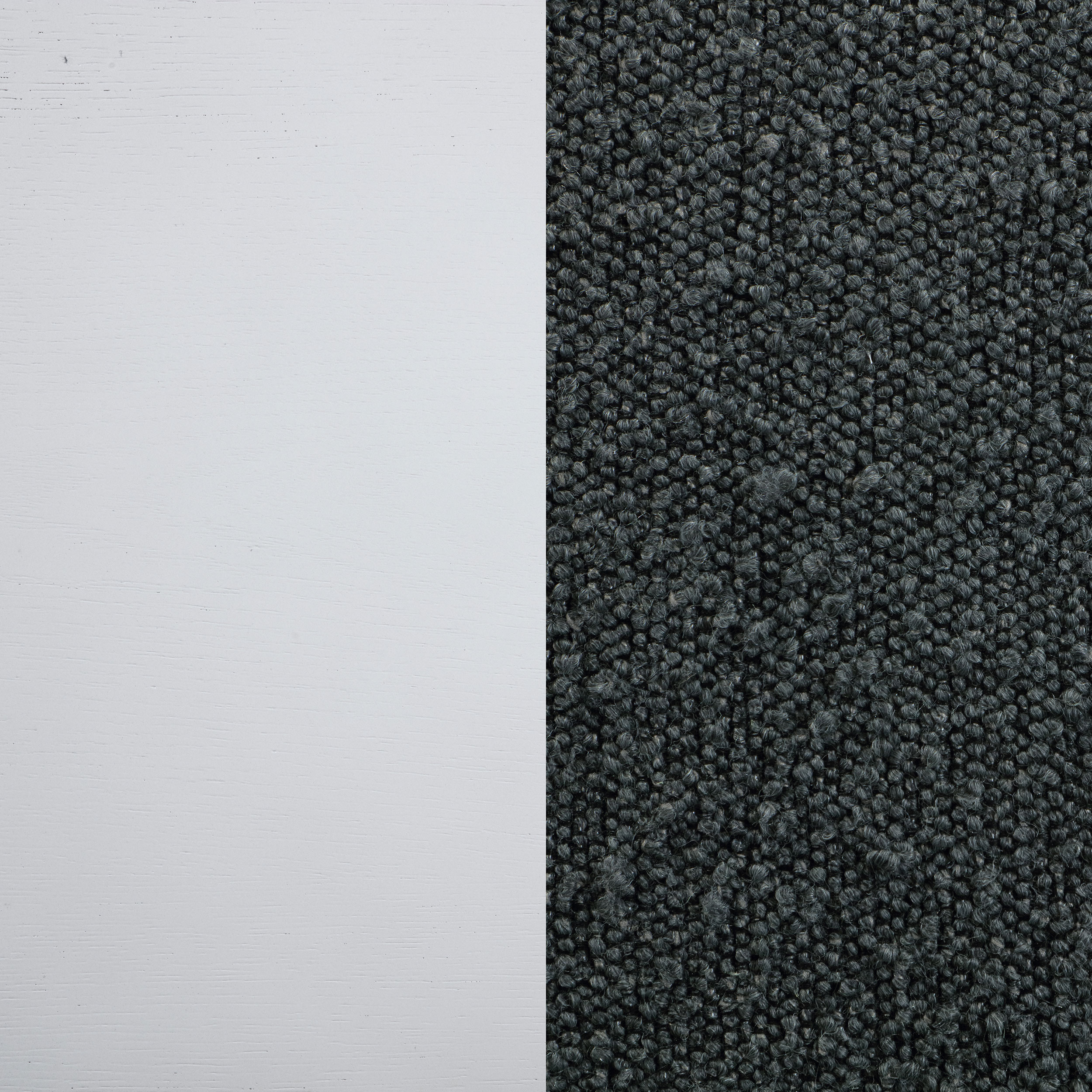 Embrace a modern minimalist presentation with this contemporary dining set. It centers on a roomy round dining table that seats four to six, with flared legs and a round shelf that adds stability and decorative potential. The set adds side chairs, each with a tall, structured silhouette and dark grey upholstery over plush foam cushions. A pearl white finish is clean and fresh, offering plenty of contrast against the grey. The set instills a clean, precise aesthetic, perfect for minimalist or maximalist decor themes.