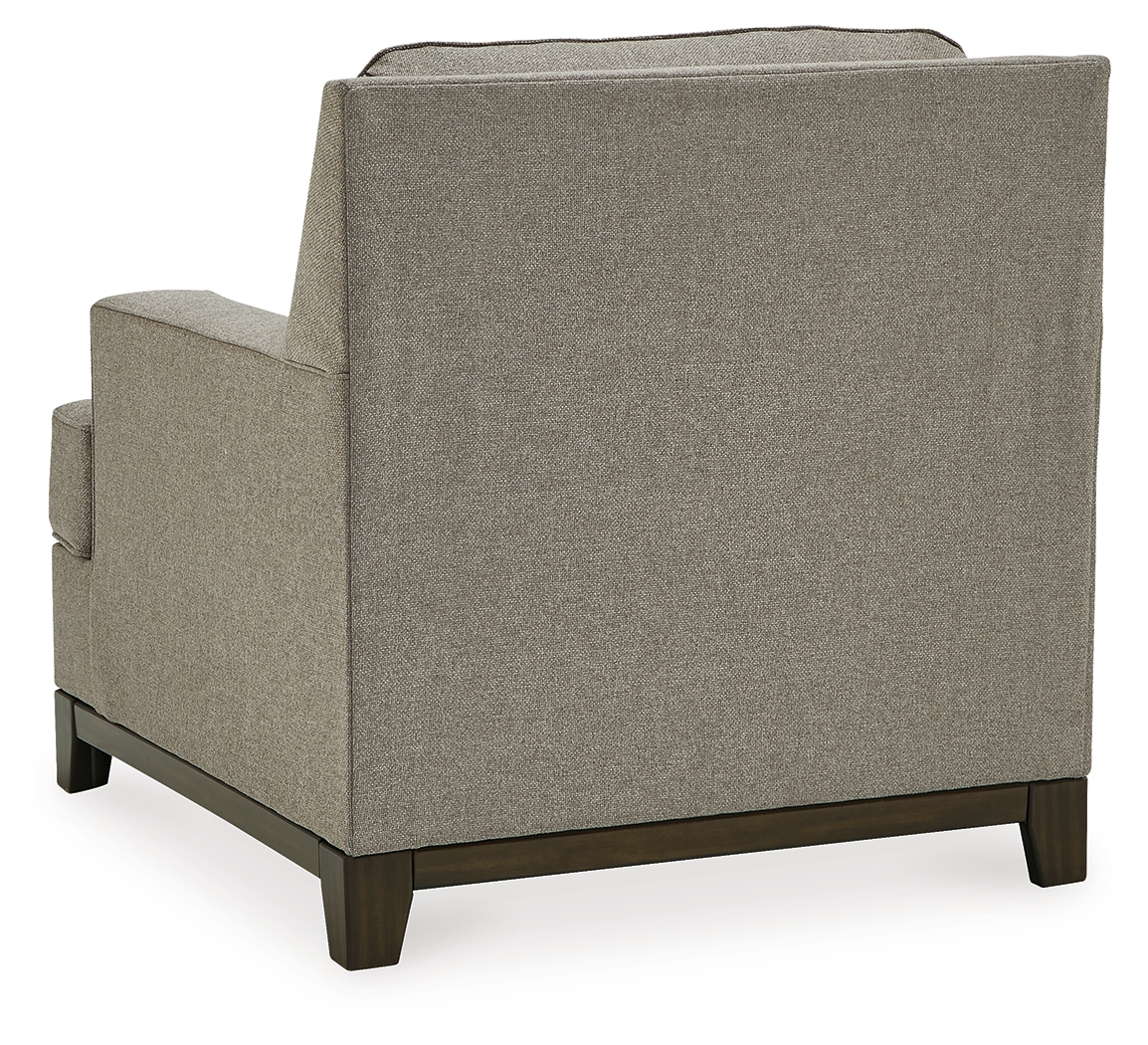 Whether your style is American classic, contemporary or an eclectic mix, this beautifully versatile chair is sure to look right at home. Distinctive elements include an exposed rail, sleek lines and decadent woven upholstery in a rich neutral shade inspired by tailored menswear. Dimensions: 38”W x 40”D x 38”H Assembly Instructions: