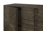 Transform your dining space with our stylish server, designed to enhance both functionality and style. This server features two door cabinets, three drawers, and two shelves, providing ample storage for your dining essentials. The sleek dark grey finish exudes modern elegance, while the brown felt-lined top drawers add a luxurious touch. Elevate your dining experience with this exquisite server, combining practicality and sophistication seamlessly.