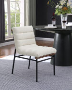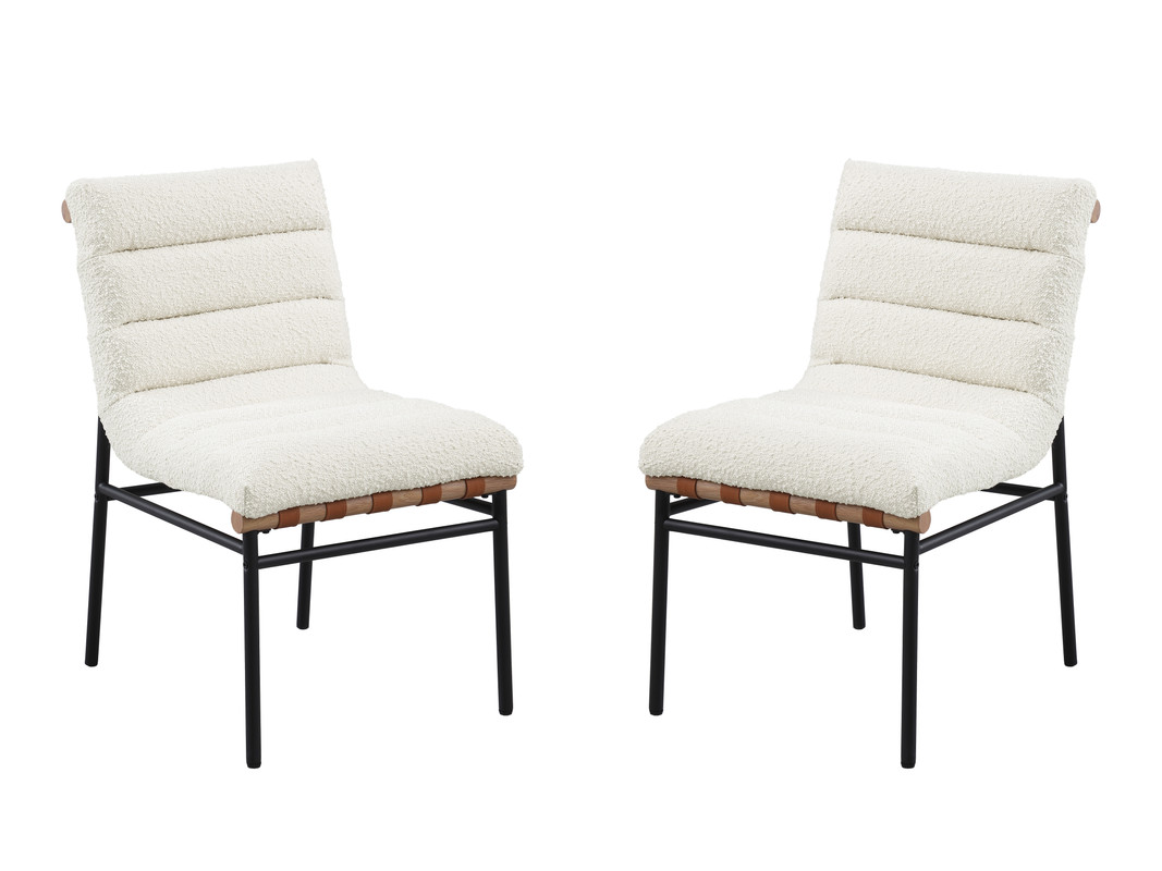 Lahni White Boucle Fabric Set of 2 Dining Chair with Black Iron Legs – Lilola