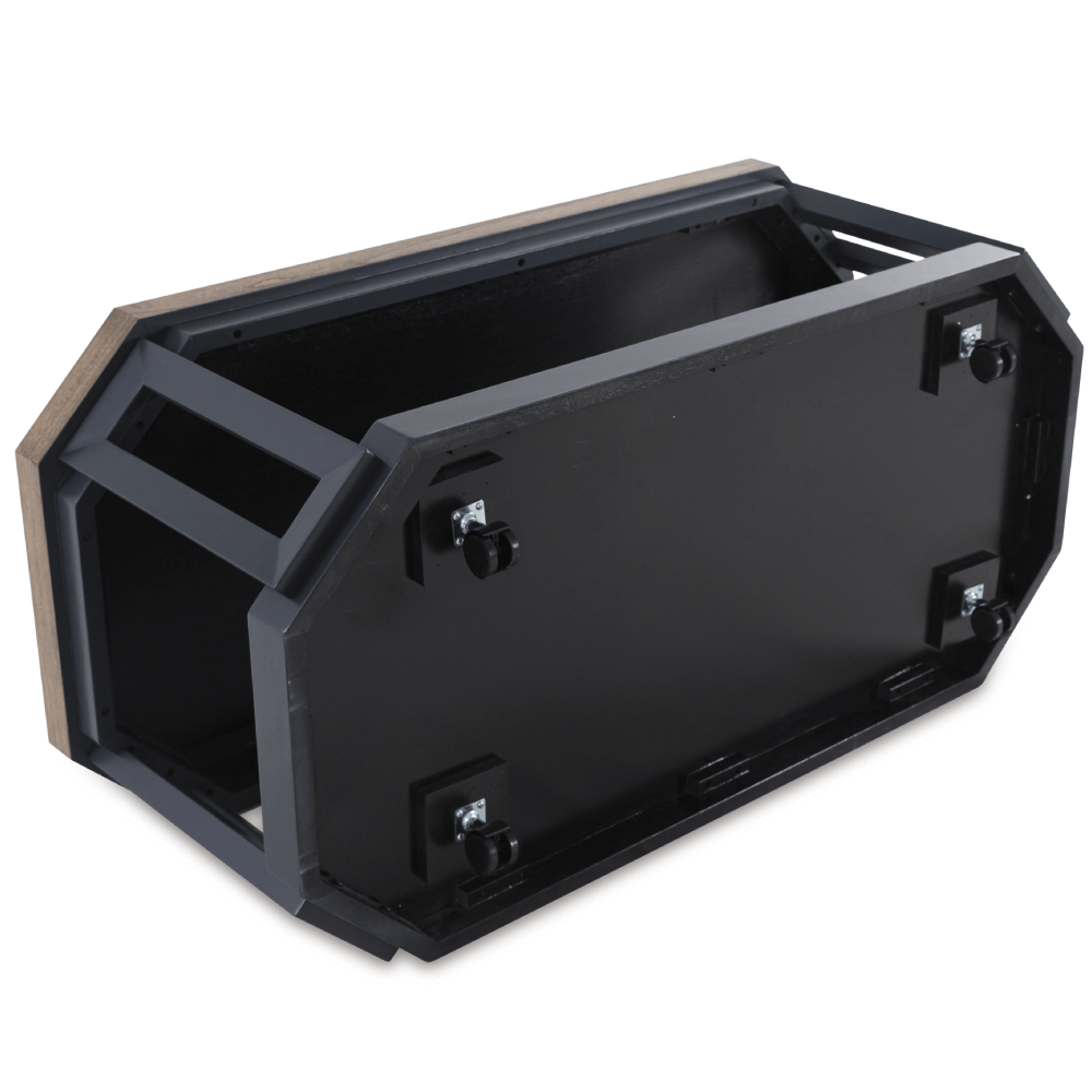 Made with hardwood solids, mindi veneer and MDF substrate