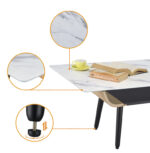 Tags: 3-D Printed Textured Top Surface, Adjustable Leveling Feet, Bent Wood, black legs, Dichromatic Storage Shelf, Marble Glass Top, Slightly Flared Legs, solid wood, white marble