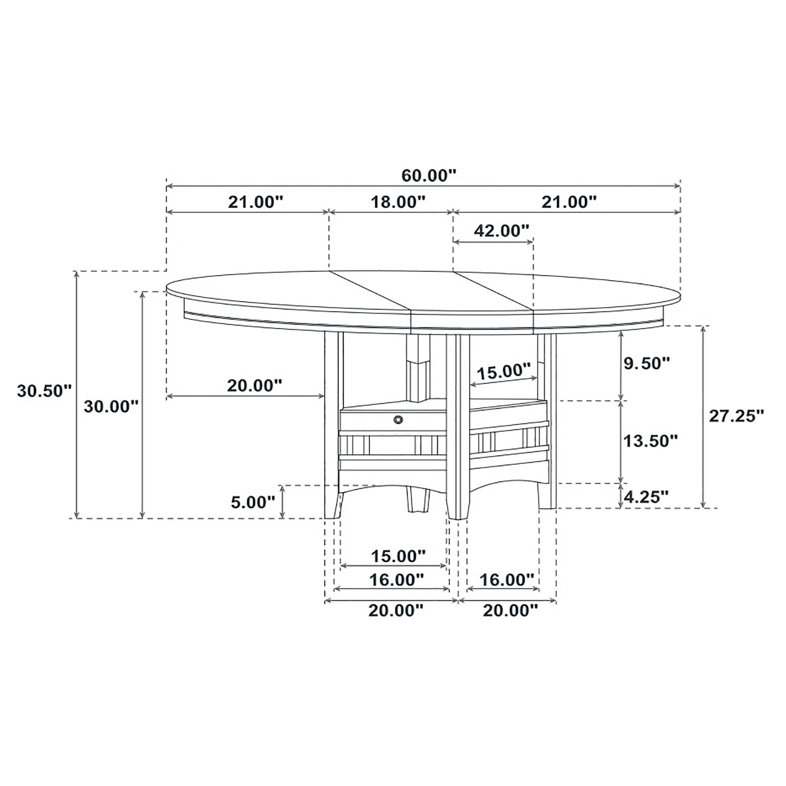 Update that boring dining room with this stylish and practical 5-piece dining set from the Lavon collection. The popular medium grey finish is a new option to highlight the transitional styling of this bestselling collection. Perfect for families, the storage pedestal base table offers not only hidden storage but an open display shelf as well. To accommodate additional guests, simply use the 18-inch extension leaf to convert the round table to an oval shape. The classic lattice back chairs feature added comfort in the form of cushioned seats upholstered in supple black leatherette.