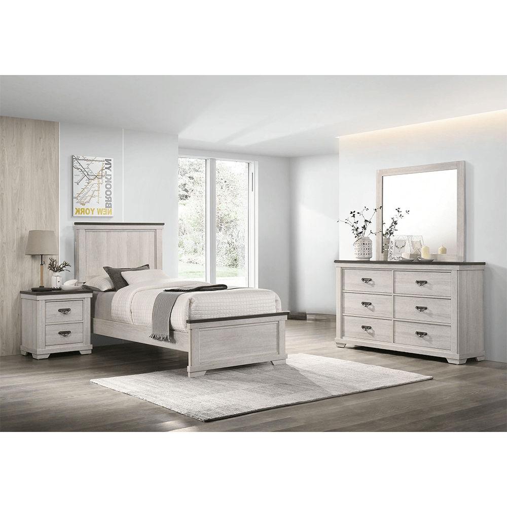 Tags: 2 tone, 4 Piece, 6 drawer, bedroom set, dresser mirror, grey, nightstand, White