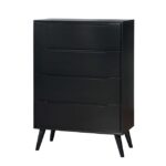 For a quick modern update to your home, this collection will add that trendy mid-century appeal. Coordinating case goods such as this chest boast slim flared legs and recessed handle drawer pulls. Mid-Century Modern Black Solid Wood, Wood Veneer, Others Round Tapered Legs Recessed Drawer Handles