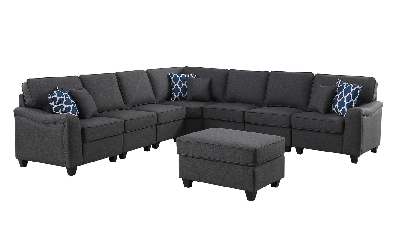 Leo 125″W Dark Gray Linen 8Pc Modular L-Shape Sectional Sofa and Ottoman – Lilola