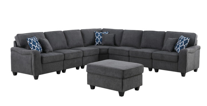 Leo 125″W Dark Gray Woven 8Pc Modular L-Shape Sectional Sofa and Ottoman – Lilola