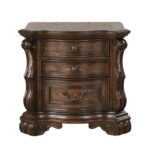 Leovanni Traditional Nightstand in Dark Brown features Ornate Moldings, Extended Corbels and Ball-Bearing Glides. Traditional Dark Brown Asian Hardwood, Oak Veneer, Engineered Wood Ornate Moldings Extended Corbels Ball-Bearing Glides French Front & English Back Dovetail Drawers Felt-Lined Top Drawers USB-A & USB-C on Nightstand