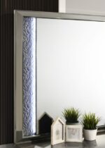 Leyland Contemporary Mirror in Dark Gray features LED Light. Contemporary Dark Gray Engineered Wood, Solid Teak & Rubberwood, Laminate LED Light