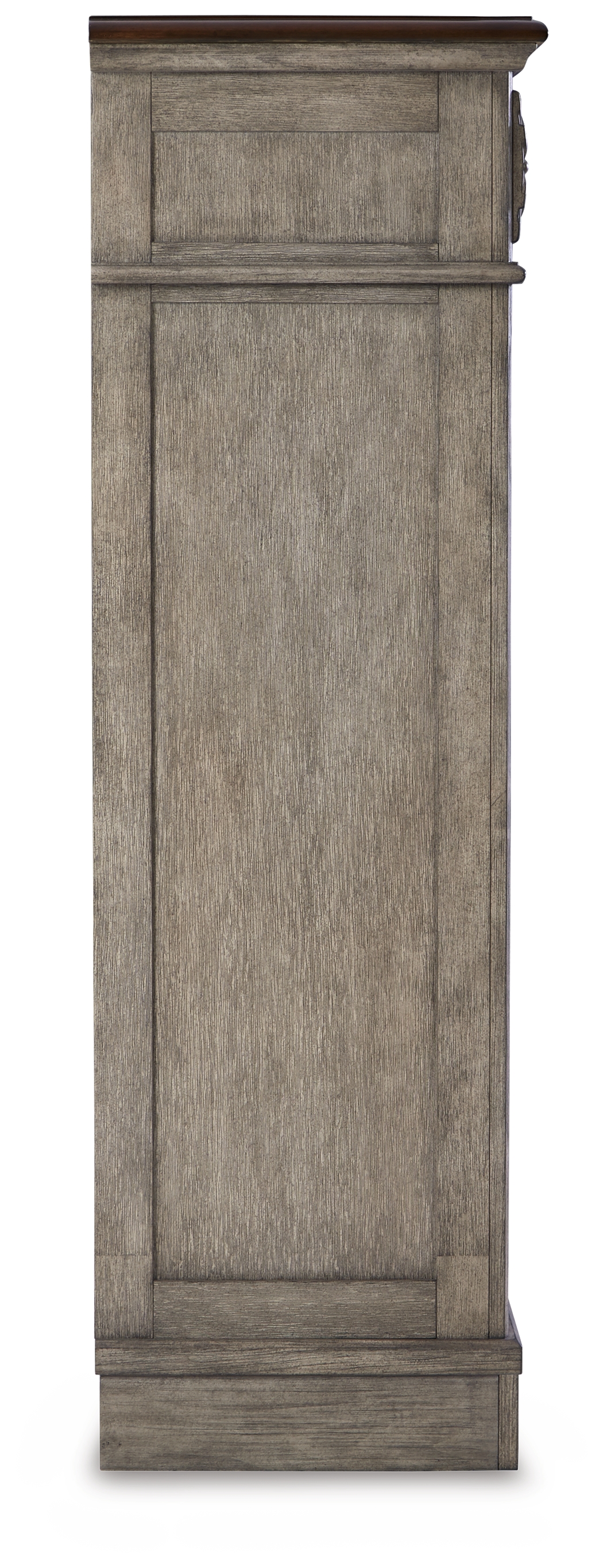 Cottage quaint styling and quality construction make this chest of drawers a dream come true. A two-tone finish provides rustic warmth, with an antiqued gray body and a rich, deep walnut on the top. Framed drawer fronts and dark bronze-tone hardware marry classic elegance and homey charm. Five smooth-gliding drawers are crafted with quality dovetail construction. Dimensions: 40”W x 18”D x 58”H Assembly Instructions: https://www.ashleydirect.com/GraphicsVault/Assembly_Instr/B751-31,46,93,93W9_AIS.pdf