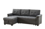 Lucca 84″W Dark Gray Linen Reversible Sleeper Sectional Sofa with Storage Chaise – Lilola