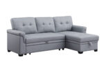 Lucca 84″W Gray Vegan Leather Modern Reversible Sleeper Sectional Sofa with Storage Chaise – Lilola