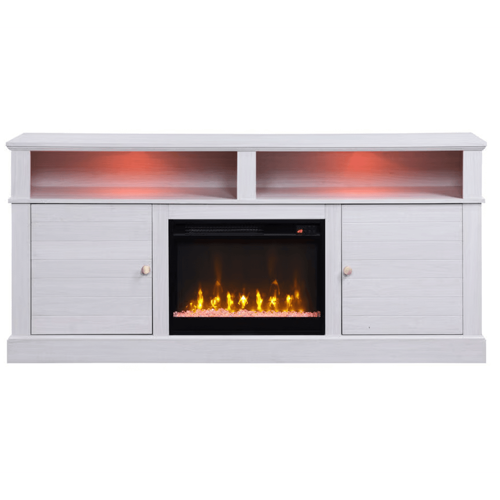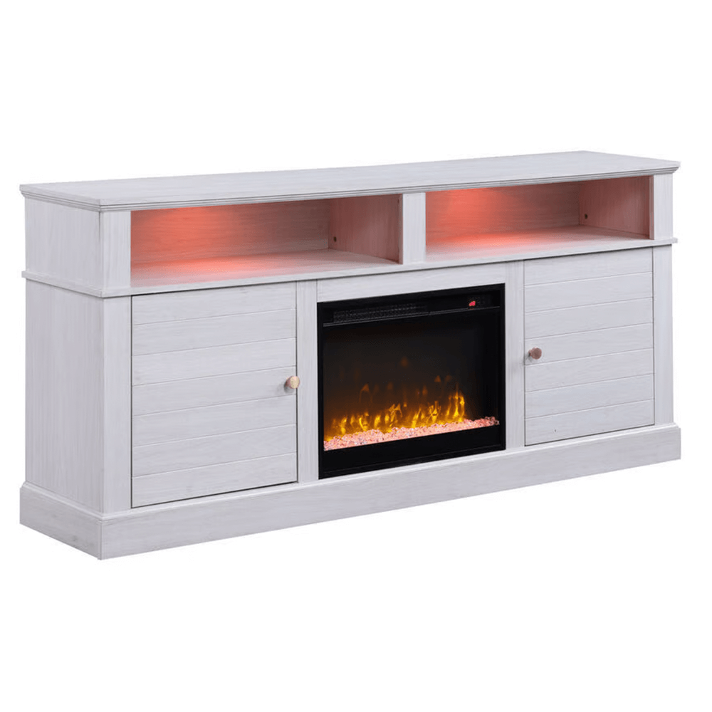 Lucifer White Walnut TV Stand with Fireplace By Lilola