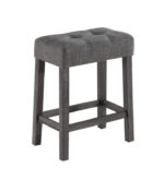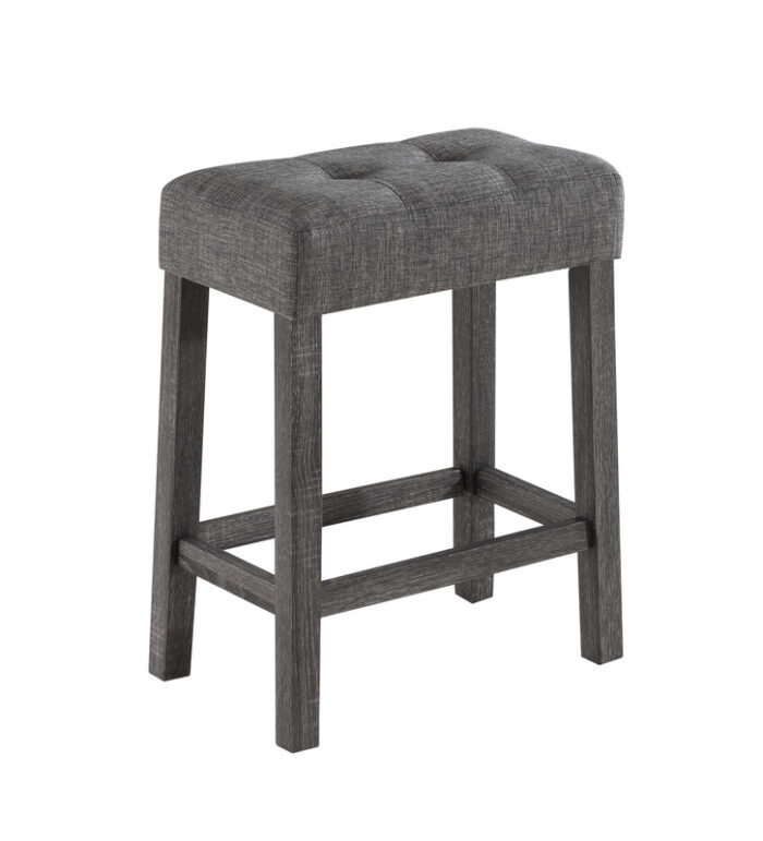 Tags: 2 Tufted Linen Stools, 36" Height Table Top, 41.5" Wide Table Top, Counter High Table Top, Ergonomic Seat, gray, linen, Natural Wood Distressed Pattern, Slightly Flared Stool Legs, Stool Size: 18"W x 11"D x24"H