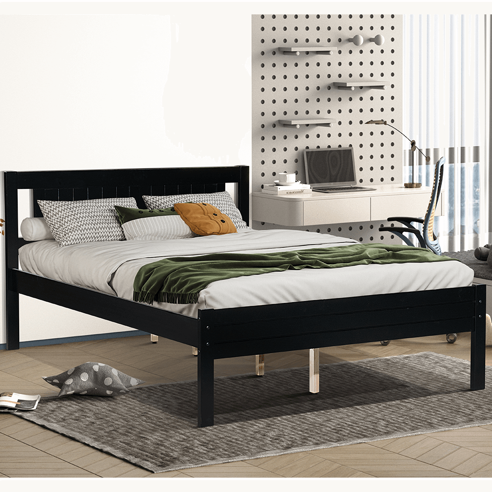 This all wood full bed features a beautiful black finish and a windowed headboard with accent slats.
