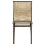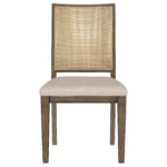 A trio of natural hues brings refined but casual character to a modern farmhouse dining chair. Perfect for friends and family enjoying delicious meals, the chair features a plush foam seat with beige upholstery. Its back is rattan, adding texture and character while maintaining a light, airy look and feel that’s rich and breathable. Its classic stance features an armless silhouette complete with a gently angled back and straight, tapering legs. The natural finish of the wood offers a refined but accessible look, perfect for inviting family spaces.