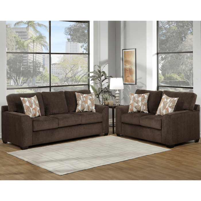 Tags: accent pillows, Brown, fabric, In Store Now, loveseat, Sofa, sofa and loveseat set