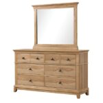 McHenry Farmhouse Dresser in Natural Oak features Felt-Lined Top Drawers, French Front & English Back Dovetail Drawers and Metal Handles. Farmhouse Natural Oak Rubberwood, Engineered Wood, Solid Wood, Pecan Veneer Felt-Lined Top Drawers French Front & English Back Dovetail Drawers Metal Handles Metal Side Glide