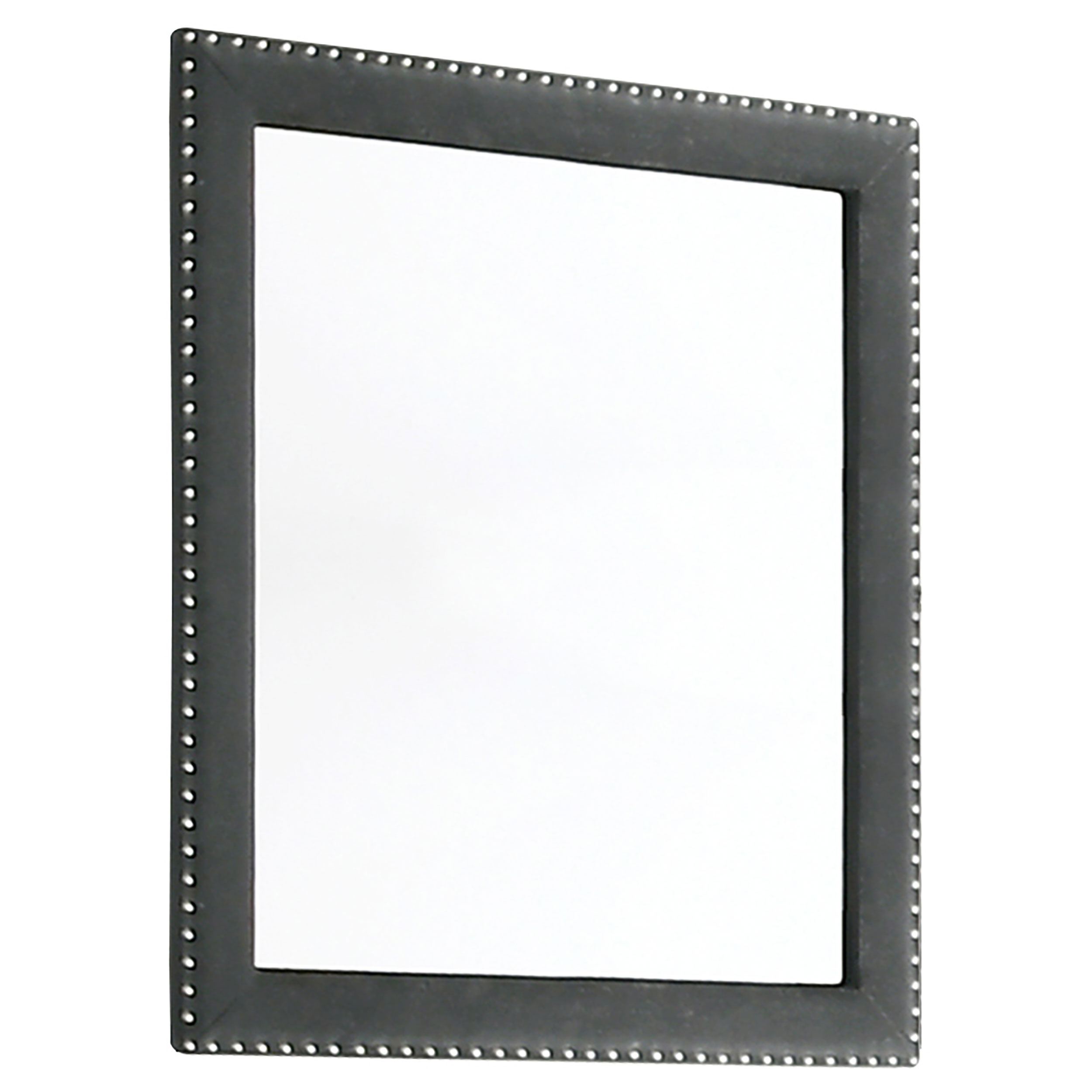 This gorgeous mirror is a masterpiece made for royalty, ready to perk up your sleeping space. Its admirable frame is upholstered entirely in gorgeous velvet fabric. Nail head trim surrounds the frame for a sleek and exquisite upgrade. Place this mirror on top of a matching dresser and watch how your sleeping space becomes transformed. Designed for glam-style bedrooms.