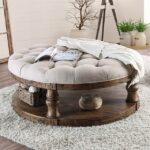 Rustic beauty and pastoral charms characterize this occasional table. You can see it in the dents and weathering along the round table top and wooden turned legs. The natural oak finish showcases the grain and contrast well with the plush beige linen top. Rustic Antique Oak Fabric, Solid Wood, Wood Veneer, Others Round Wooden Table Top Open Shelf Turned Support Legs