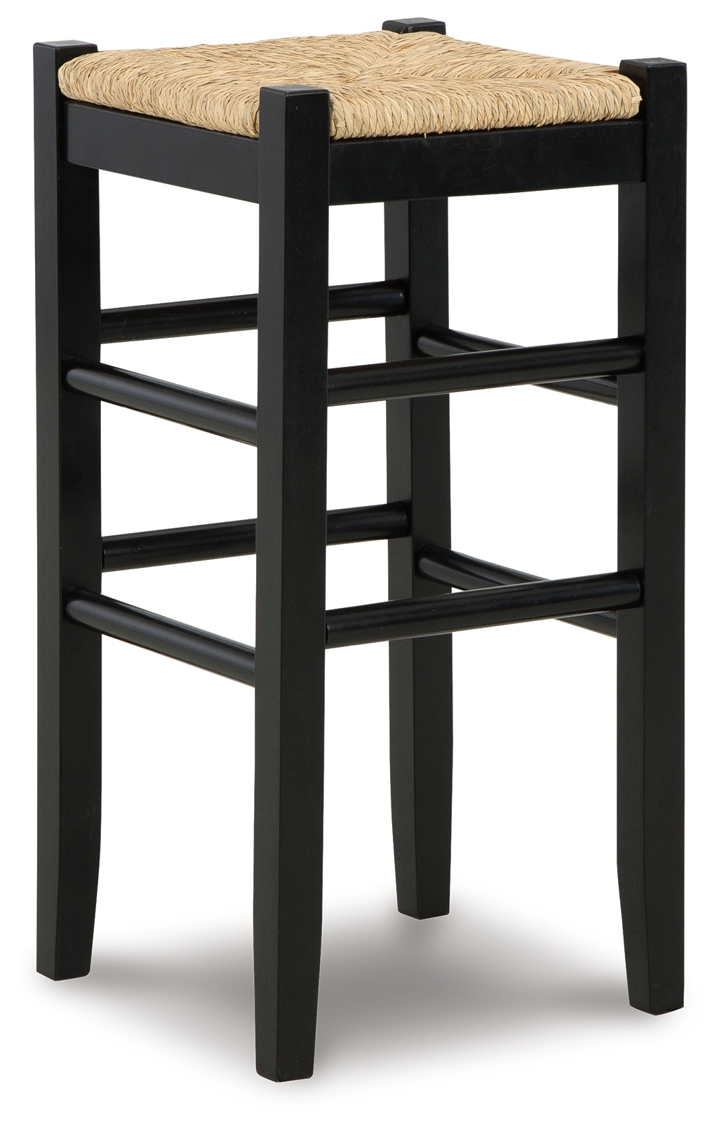 Bring the vintage casual vibe you love to the kitchen with this bar stool. A stylish seating solution in a chic black finish, this charming stool completes your dining space with ease. The woven seagrass seat and wood stretchers create an effortlessly beautiful look with endless possibilities. Dimensions: 14”W x 14”D x 30”H Assembly Instructions: https://www.ashleydirect.com/GraphicsVault/Assembly_Instr/D508-124,130,224,230,324,330_I.pdf