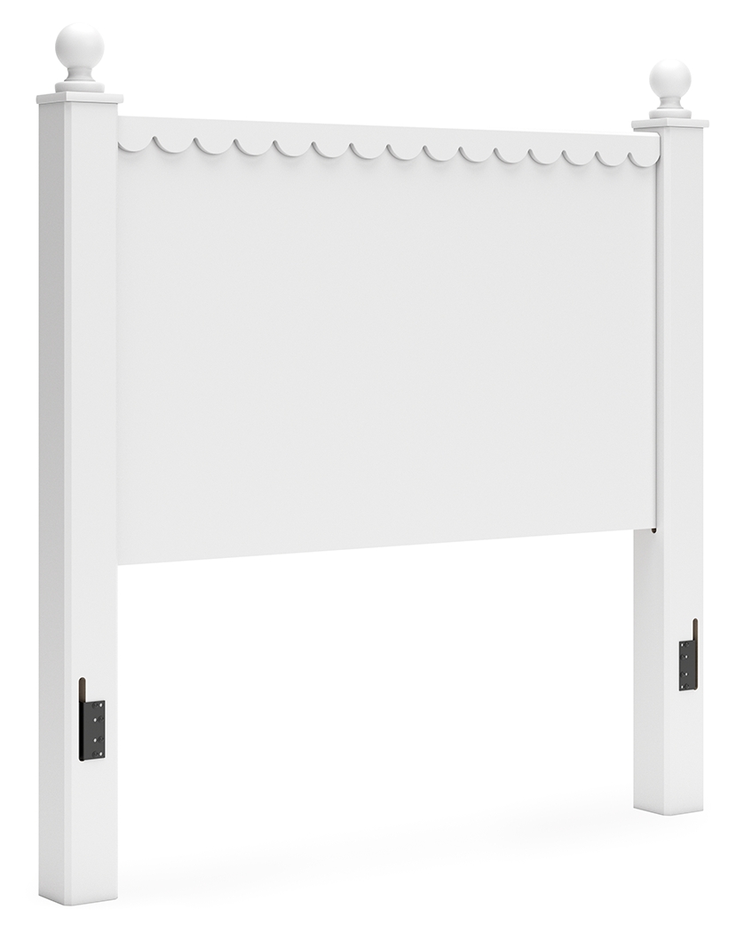 Make morning or bedtime that much more magical with this full panel headboard. Charmingly cute with its scalloped detailing, it appeals to both her sense of playful whimsy and your love for modern design. And the headboard’s crisp white finish gives you the versatility to pair it with existing decor. Dimensions: 56”W x 5”D x 59”H Assembly Instructions: https://www.ashleydirect.com/GraphicsVault/Assembly_Instr/10525734.PDF