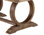 Delight family and guests alike in this rich rustic oak ensemble. The dining table features a distinctive trestle base with circular legs and wide stable feet, holding up a spacious table top, which expands with an 18-inch le Transitional Rustic Oak/Beige Fabric, Solid Wood, Wood Veneer, Others Trestle Base Expandable w/ 18-inch Leaf 100% Polyester