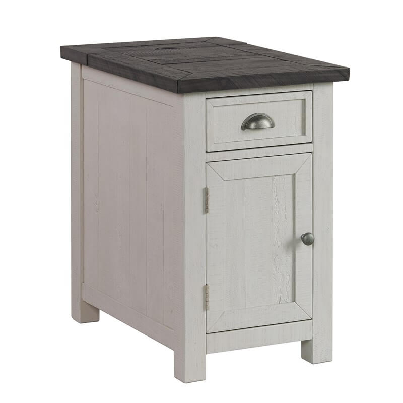 The Monterey Chairside Table in White and Grey by Martin Svensson Home has a White and Grey finish as well as 2 outlets and 2 USB charging ports.