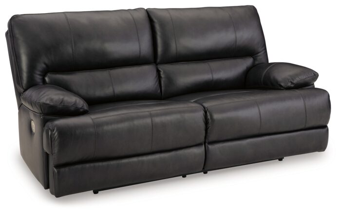 Striking form, meet contemporary function. This power reclining sofa combines your ideal comfort features, like one-touch reclining and adjustable headrests, into one sophisticated package. With a design defined by the luxe look of black leather, this sofa pairs beautifully with your uncompromisingly posh aesthetic. Dimensions: 85”W x 42”D x 42”H Assembly Instructions: https://www.ashleydirect.com/GraphicsVault/Assembly_Instr/P2connectionsheetcorrect.pdf