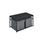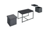Tags: 2 Storage Stools Included, black, Black Metal Base, Leveling/Adjustable Legs, MDF Tabletop, Storage Dimensions: 14.17"x14.17"x13.78", Tabletop Thickness: 1.41"