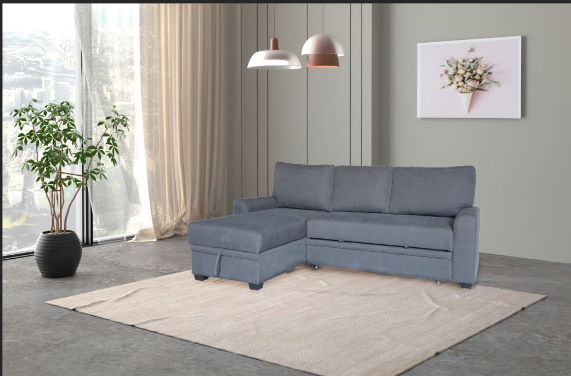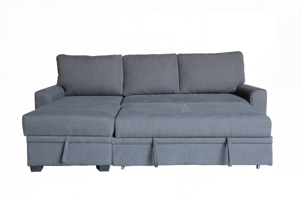 Namir 90.5″W Gray Flannel Fabric Sleeper Sectional with Left-Facing Storage Chaise – Lilola