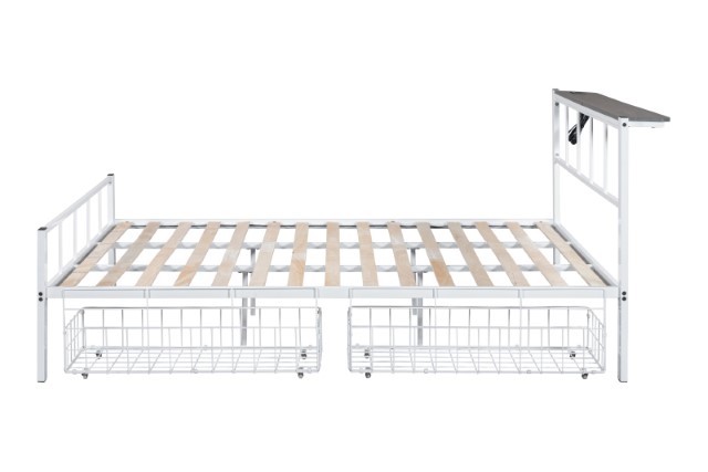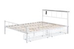 Nicoli Contemporary Queen Metal Bed With Underbed Storage in White features Underbed Storage, USB Outlet on Headboard and Mattress Ready. Contemporary White Metal Underbed Storage USB Outlet on Headboard Mattress Ready