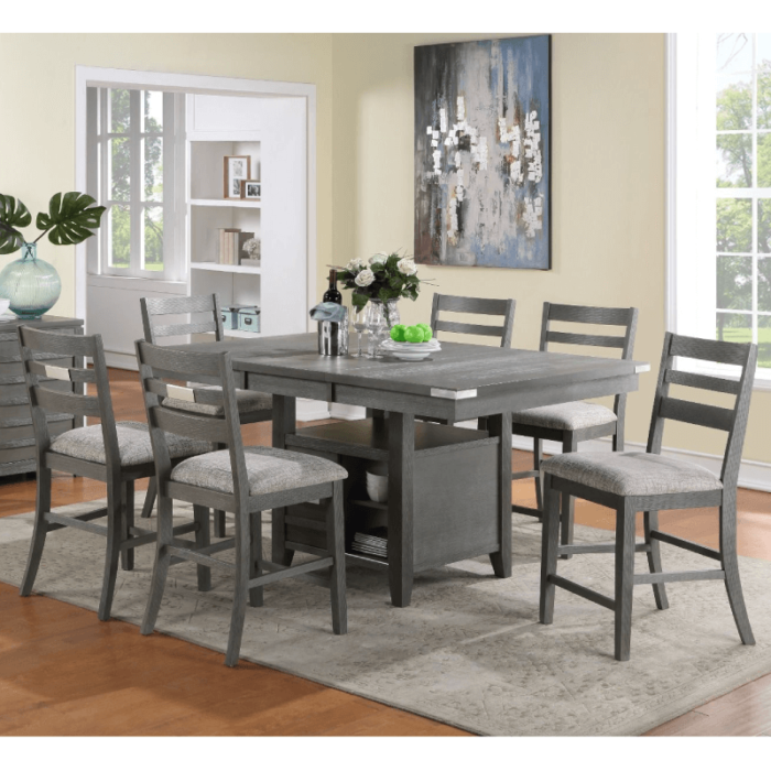 Tags: 7 piece, grey, In Store Now, leaf extension, metal accents, pub, rectangular